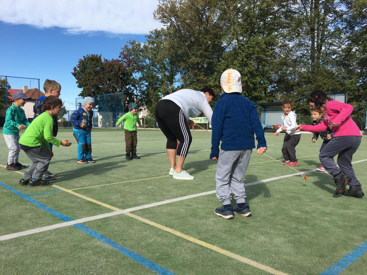 Využíváme hezkého počasí ke cvičení na hřišti